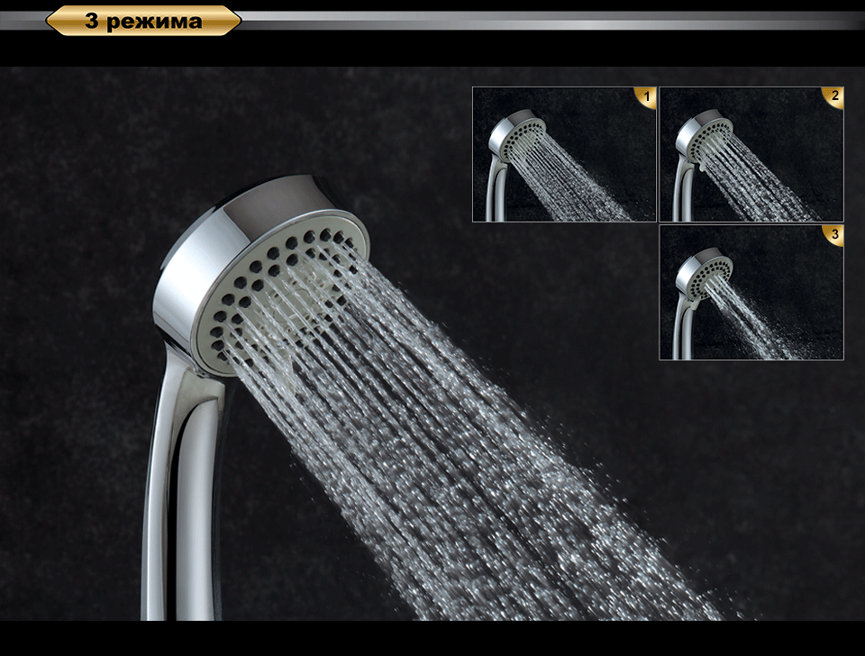 - Душевая трехрежимная лейка и шланг длиной 150 см уже в комплекте.