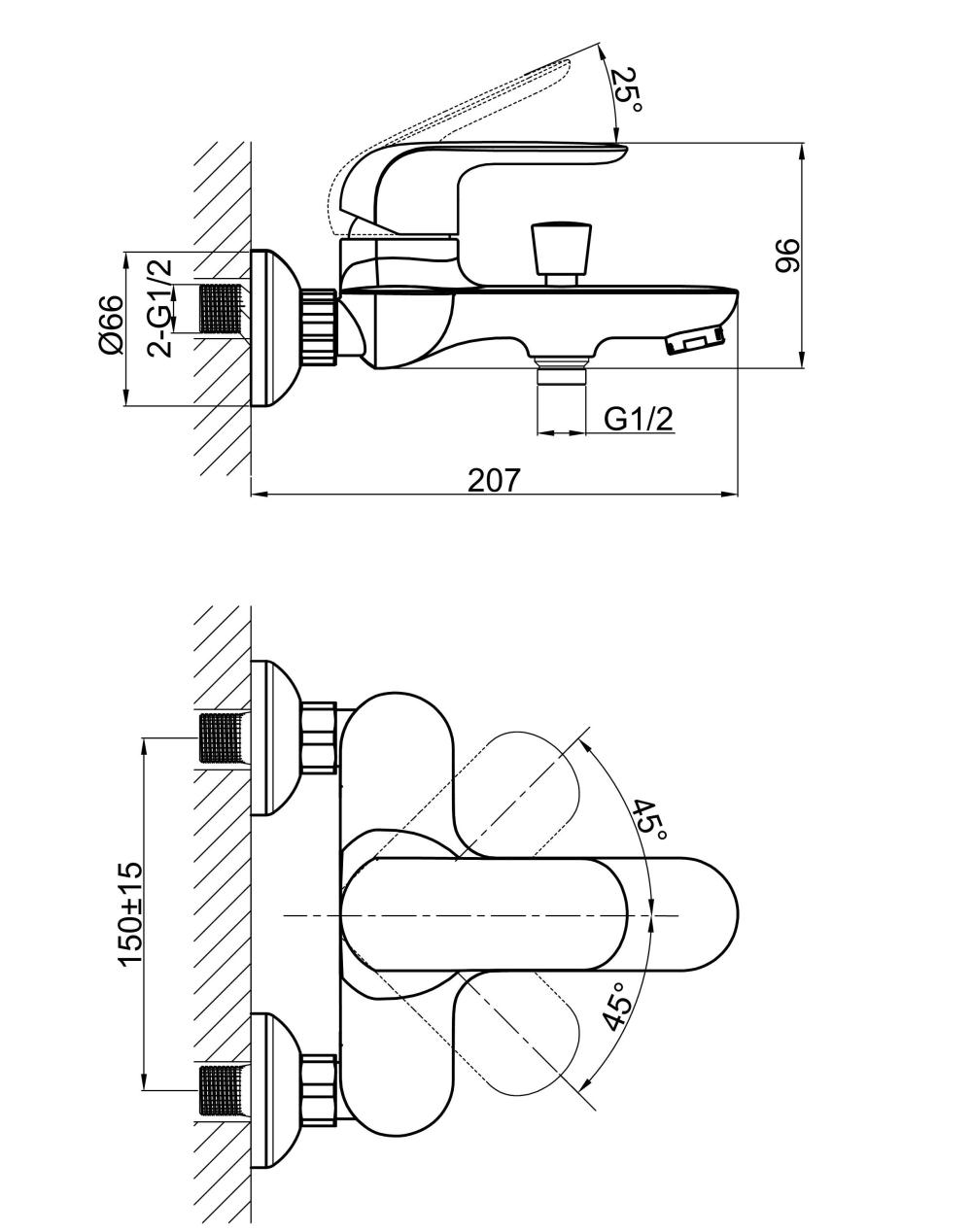 - Монатаж - настенный, 2 отверстия