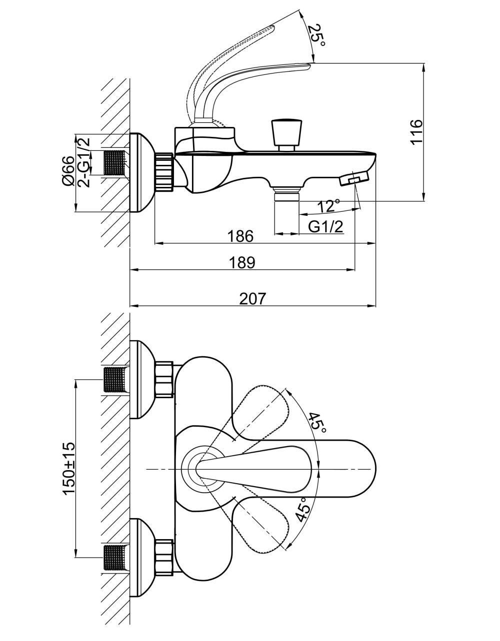 - Монатаж - настенный, 2 отверстия