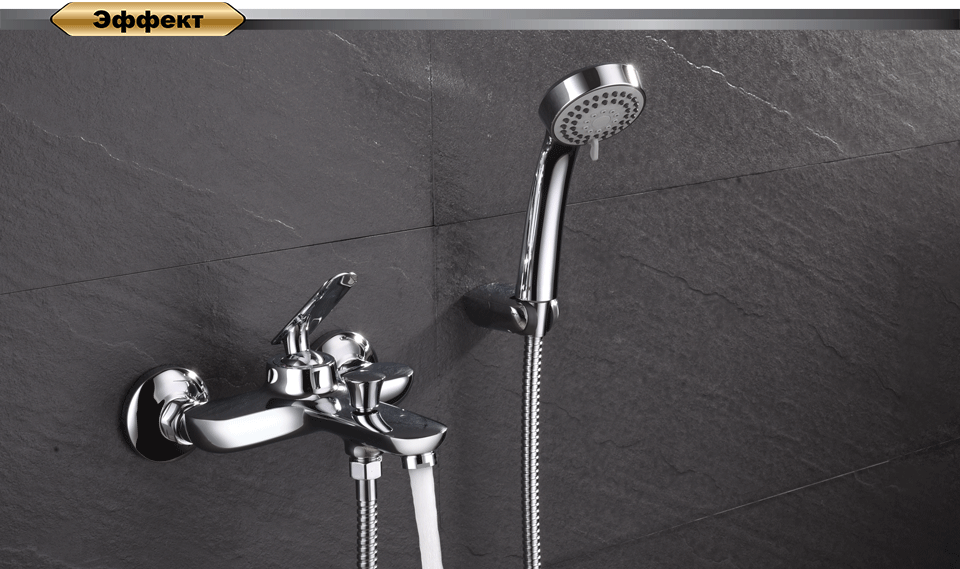 Смеситель, эксцентрики-2шт, декоративная шайба (отражатель)-2шт, шланг душевой, лейка душевая-3 режима, держатель душевой лейки, паспорт, брендовая сумка
