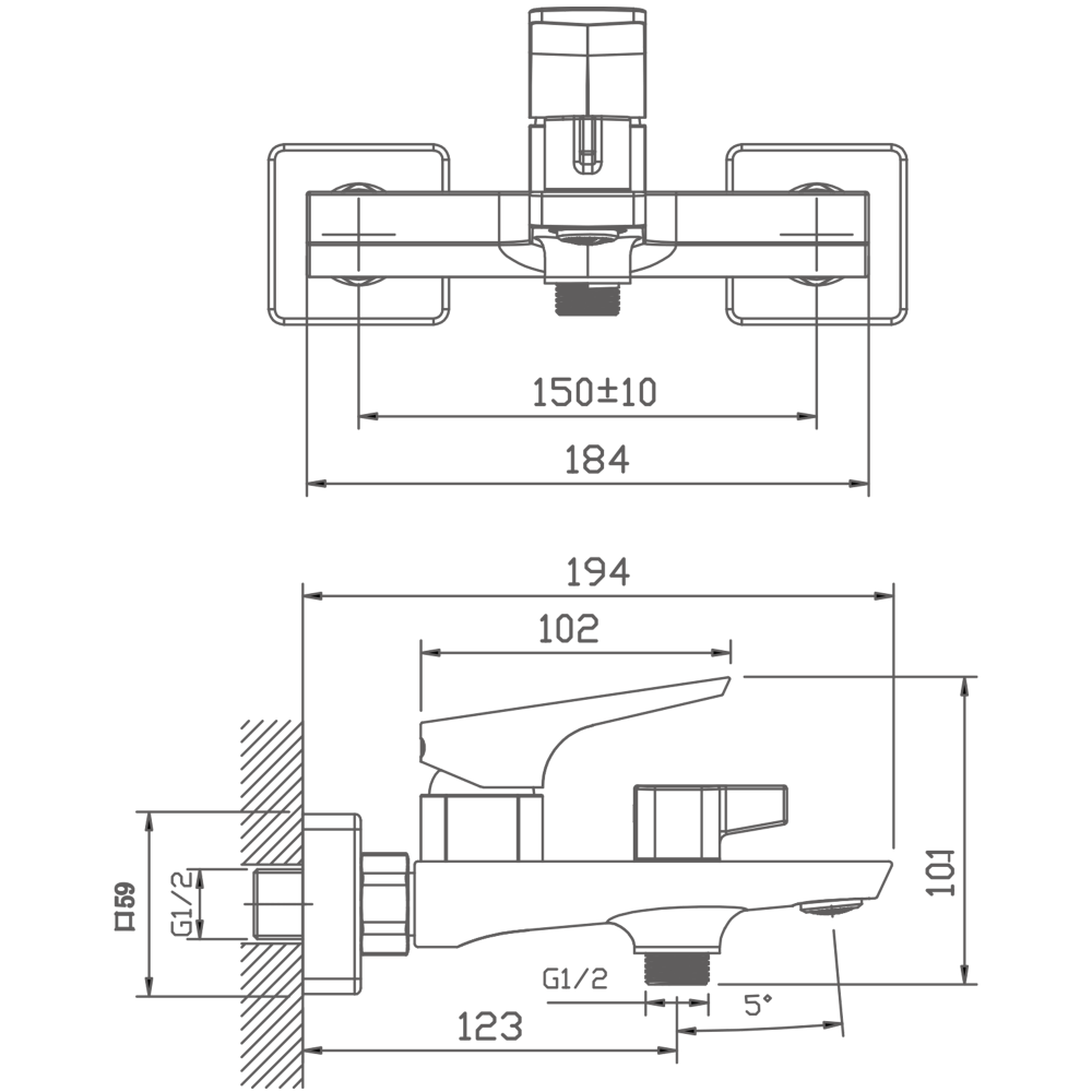 Смеситель для ванны HAIBA черный (HB60726-7)
