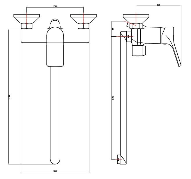 Корпус: латунь кат.A Излив: поворотный, 320мм Картридж: универсальный ESKO, 35мм Переключатель: механический(керамика) Комплектация: эксцентрики, отражатели, шланг душевой (в металл. оплетке - 150см.), лейка душевая(5 режимов), настенный держатель для лейки.