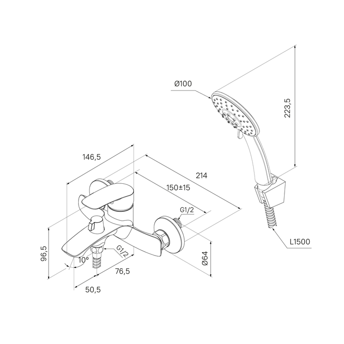 • Ручная лейка из прочного ABS-пластика, ПВХ-шланг (1,5 м) в оплетке из нержавеющей стали и крепеж идут в комплекте.
