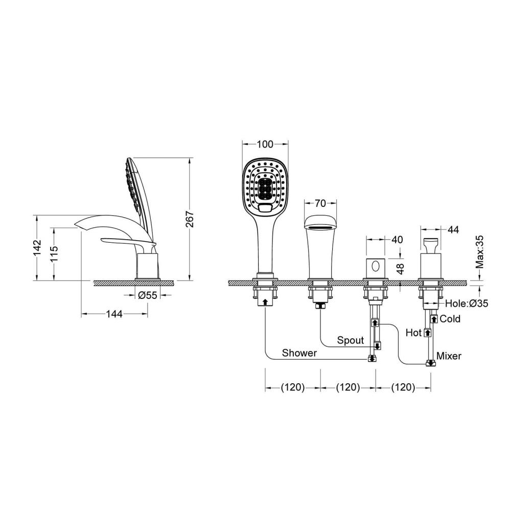Смеситель для ванны и душа, врезной Timo Helmi (4020/03Y) черный. В комплект входит: Смеситель врезной - 1 шт.