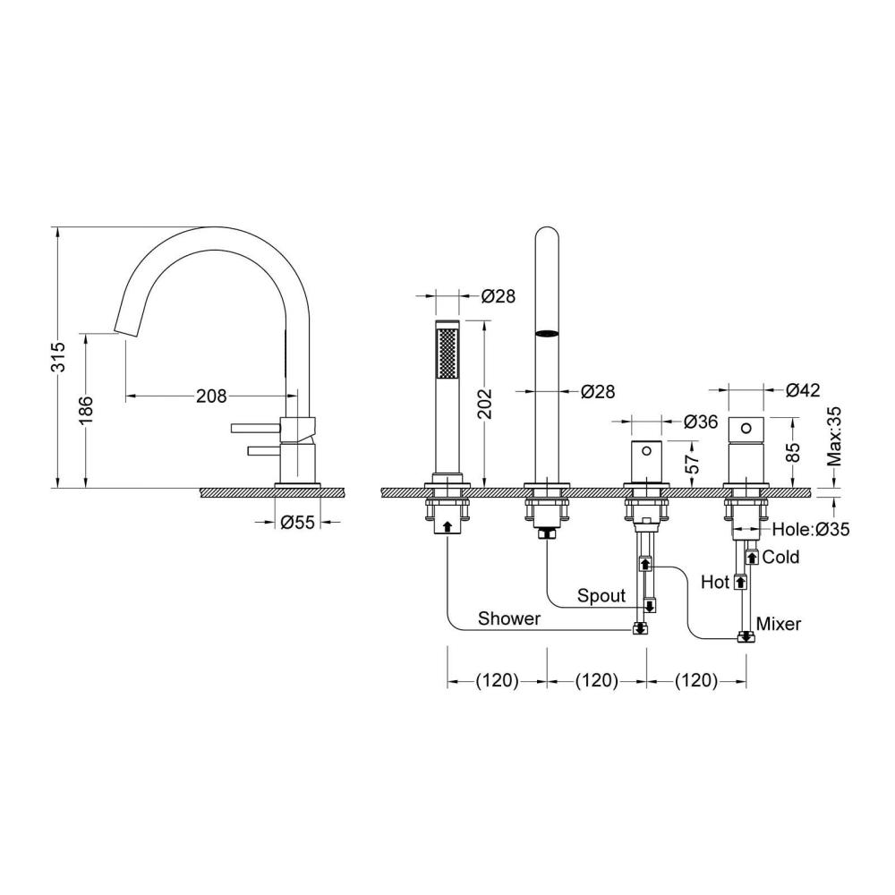 Смеситель для ванны и душа, врезной Timo Saona (2320/03Y) черный