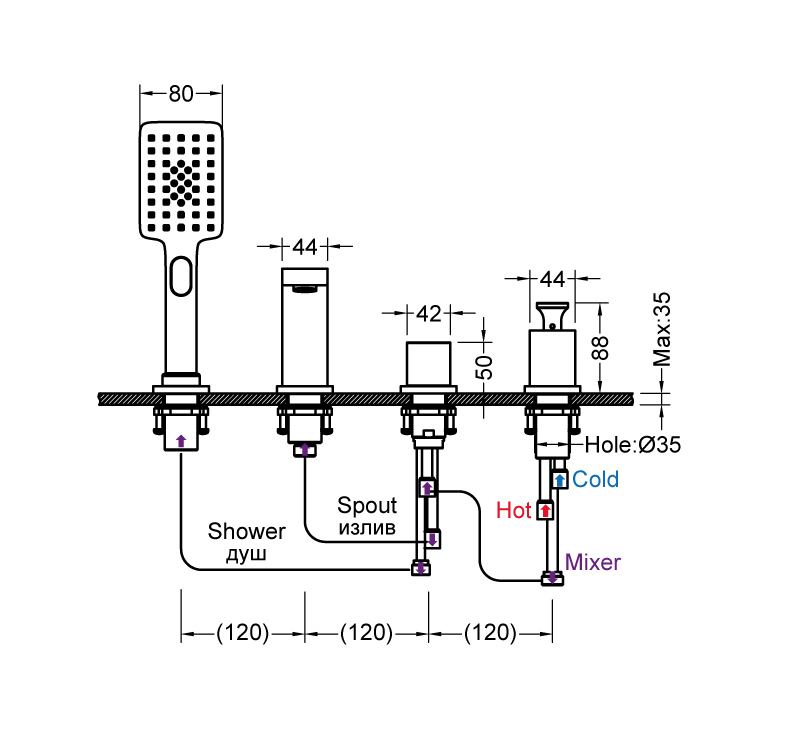 - Монатаж - на борт ванны, 4 отверстия