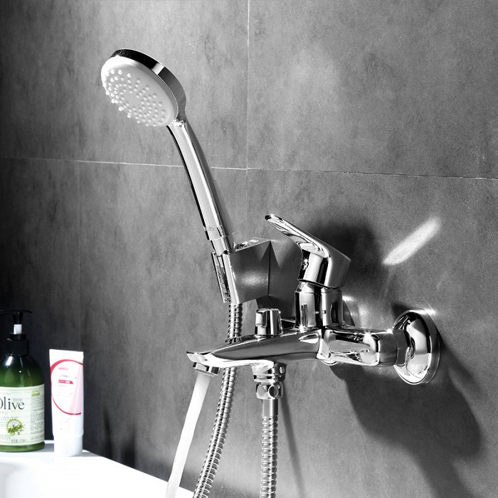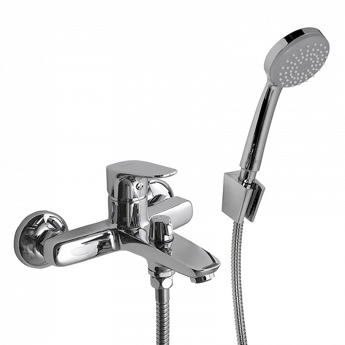 • Смеситель комплектуется однорежимной лейкой для душа, шлангом длиной 1,5 метра повышенной надежности и держателем для лейки.
