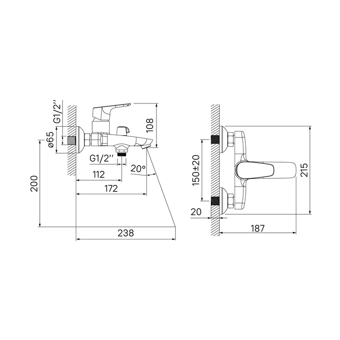 - Монатаж - настенный, 2 отверстия