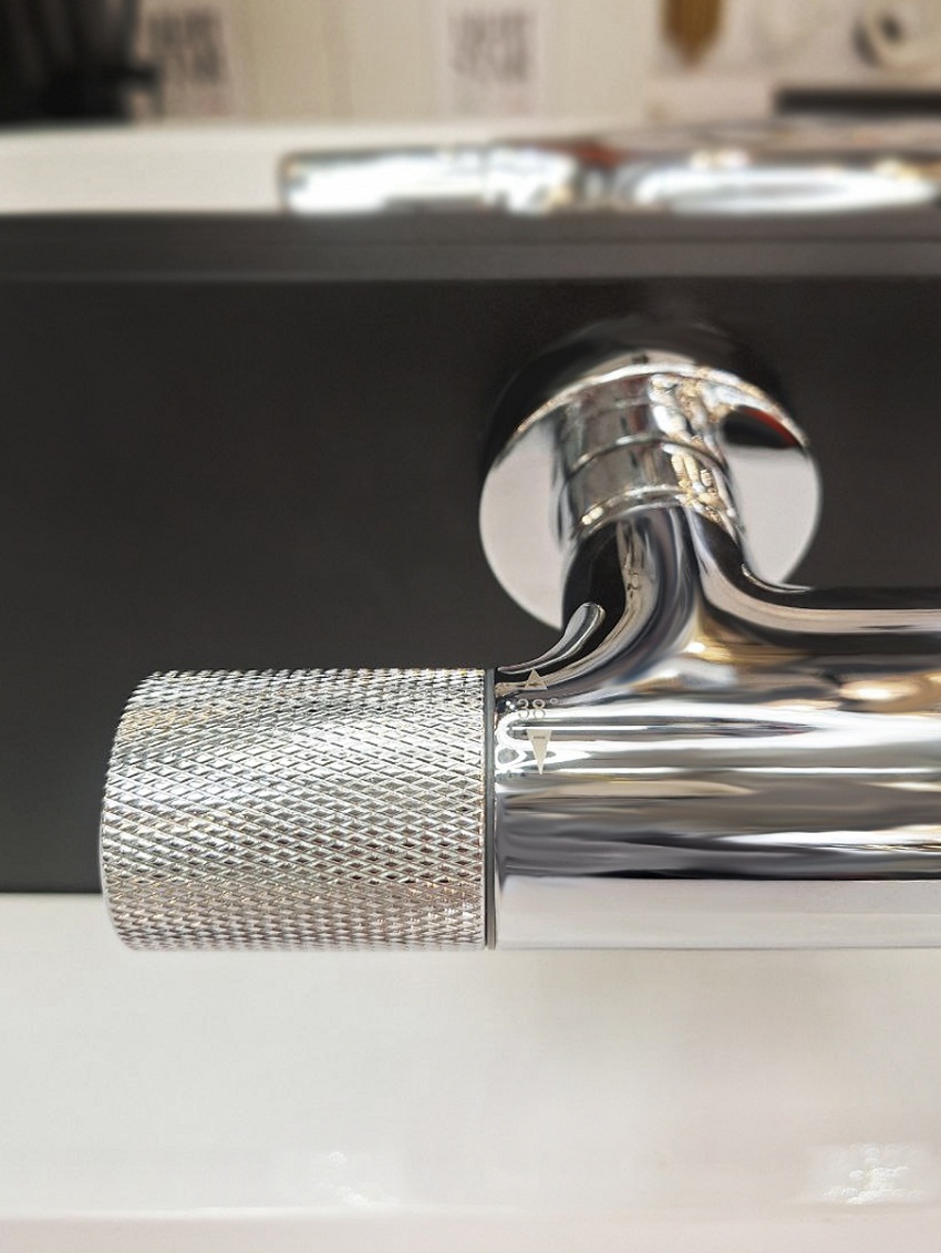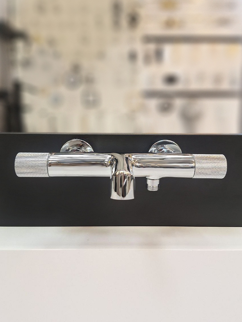 - Комплектация: термостатический смеситель настенного монтажа, аэратор, эксцентрики, чаши декоративные
