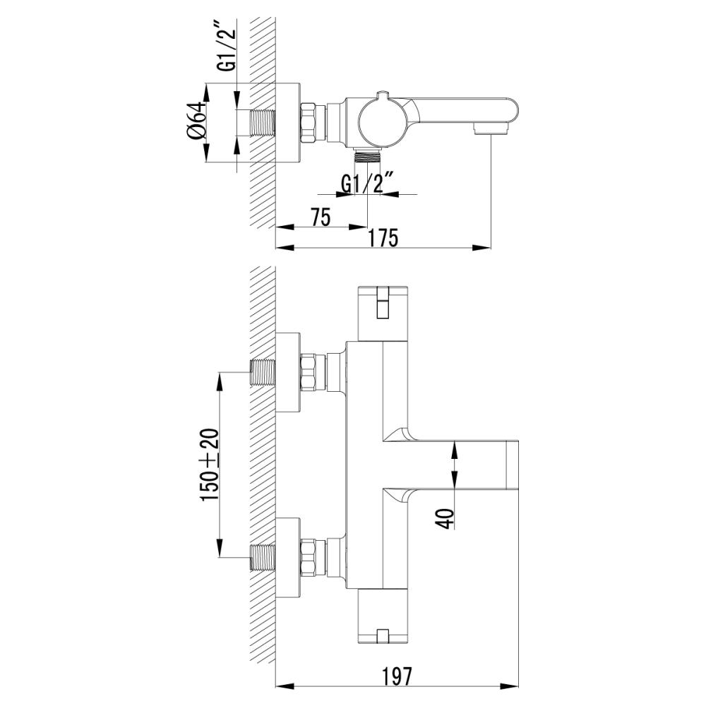 - Монатаж - настенный, 2 отверстия