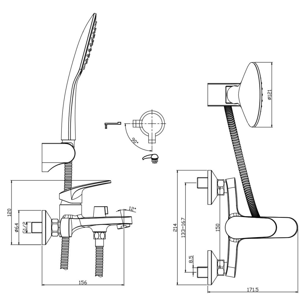 Аксессуары в комплекте (шланг 1,5 м, настенное поворотное крепление для лейки, 3-функциональная лейка ø121*259 мм с функцией легкой очистки)