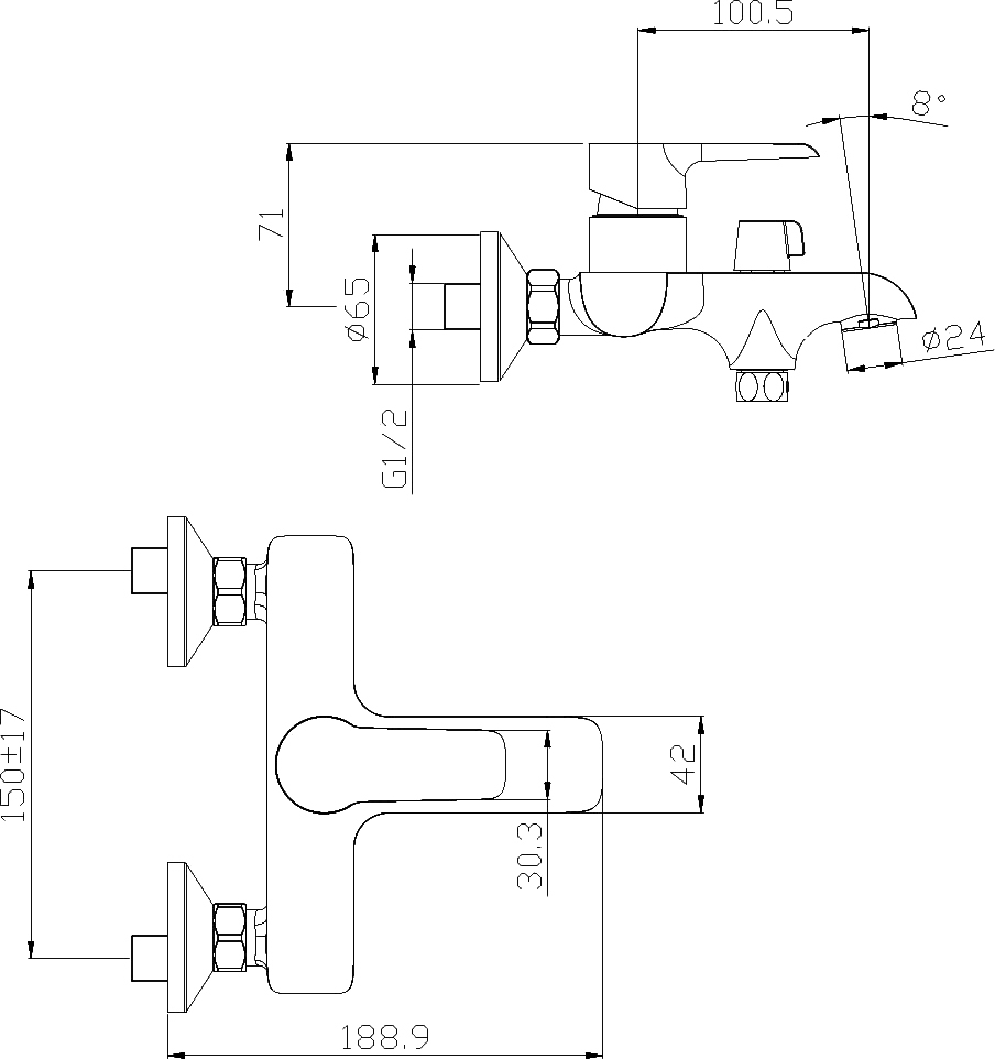 - Монатаж - настенный, 2 отверстия