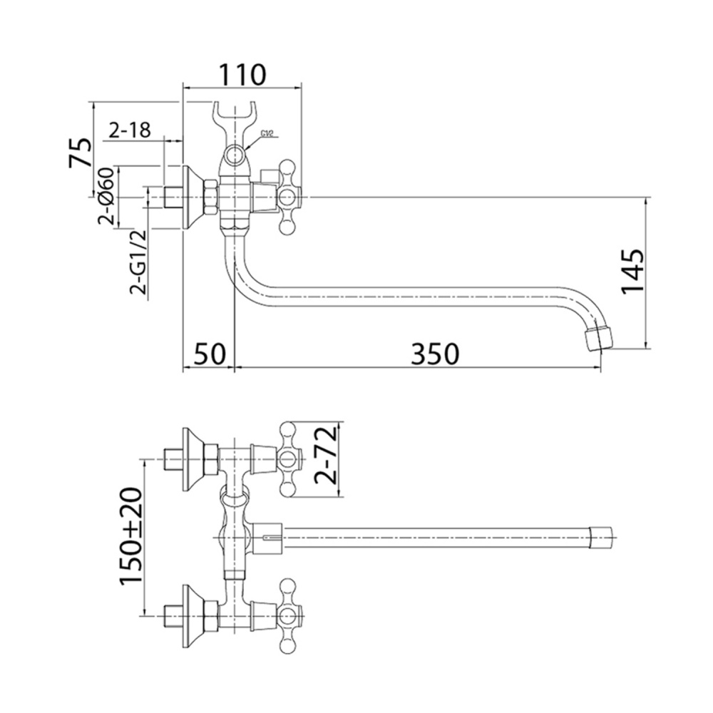 Смеситель для ванны с длинным изливом Milardo Duplex (DUPSB02M10)
