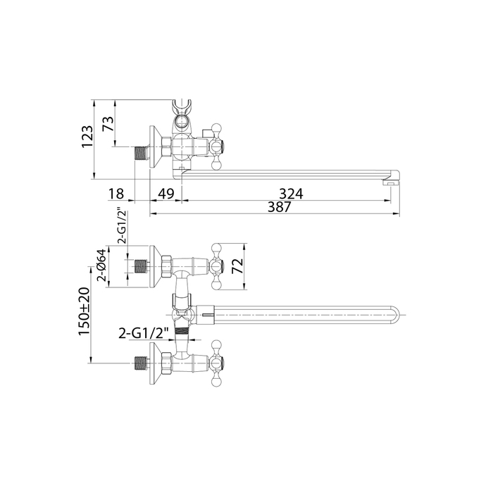 - Монатаж - настенный, 2 отверстия