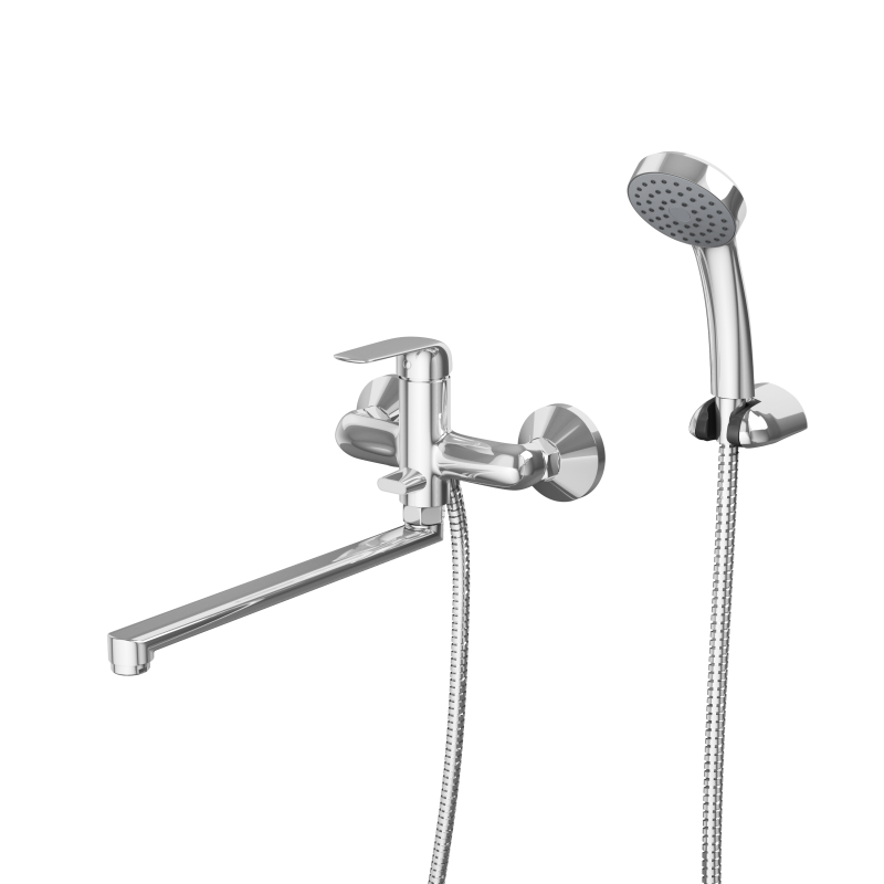 В комплекте однорежимная душевая лейка и душевой шланг длиной 1,5м., держать душевой лейки, латунные эксцентрики, фум-лента, индивидуальный пакет, паспорт, гарантийный талон.