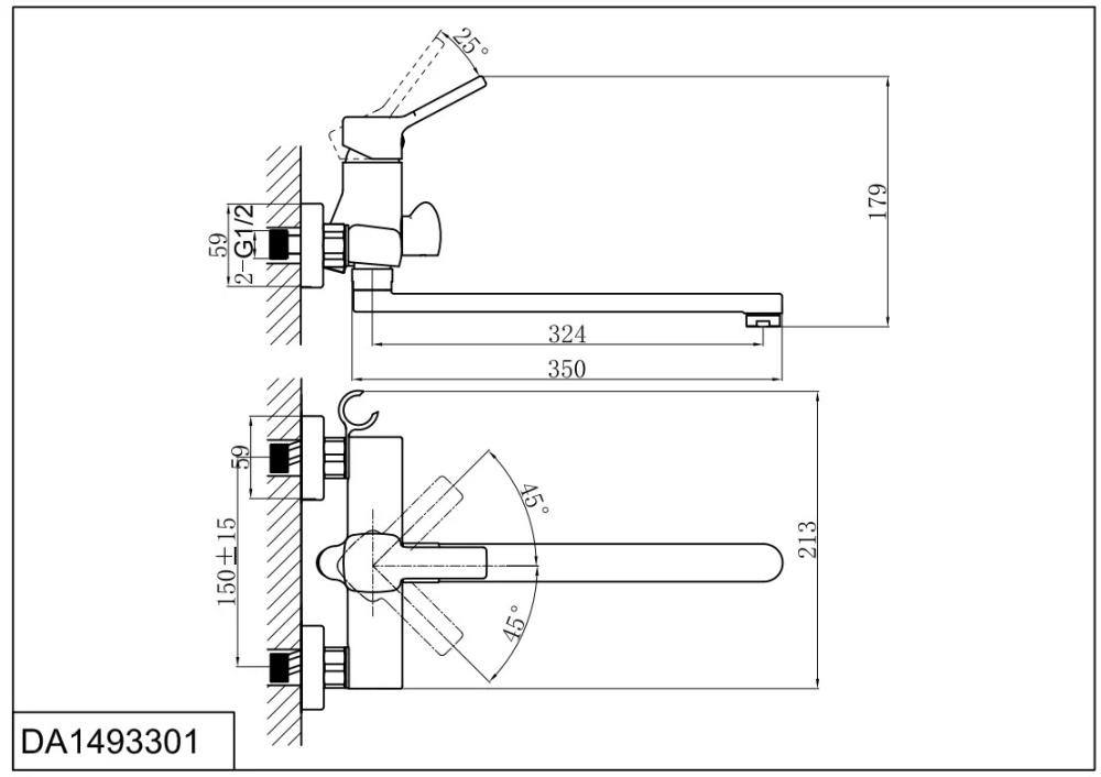 - Монатаж - настенный, 2 отверстия