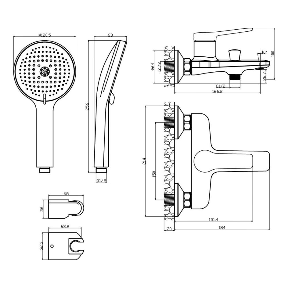- Монатаж - настенный, 2 отверстия
