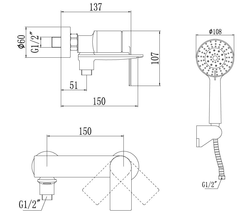 Смеситель для ванны с гарнитуром S-601808H черный Savol