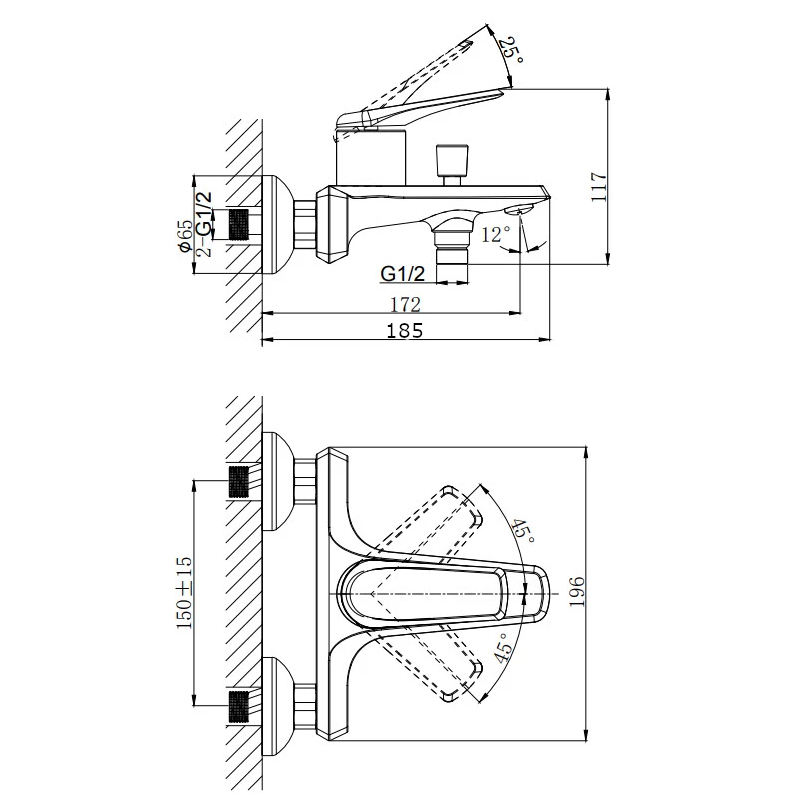 В комплекте универсальная присоединительная группа для установки на вертикальную поверхность, однорежимная душевая лейка и душевой шланг длиной 1,5м., держать душевой лейки, нержавеющие эксцентрики фум-лента, индивидуальный пакет, паспорт, гарантийный талон.