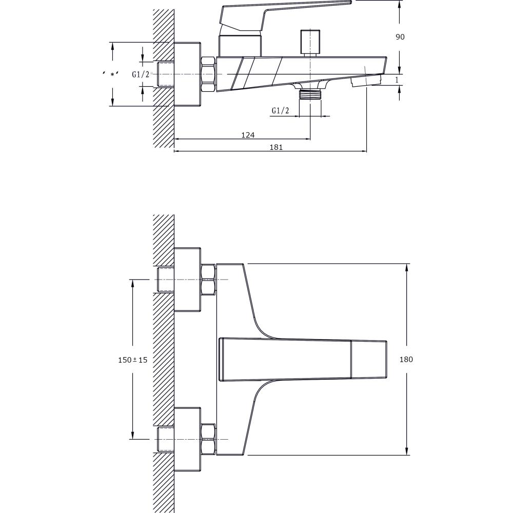 Смеситель для ванны RUSH арт. TR3635-44Grey с коротким изливом из коллекции Thira изготовлен из высококачественной латуни и имеет рычажное управление.
