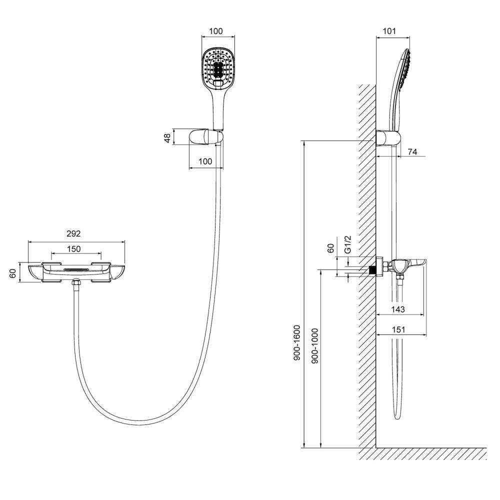 - Монатаж - настенный, 2 отверстия