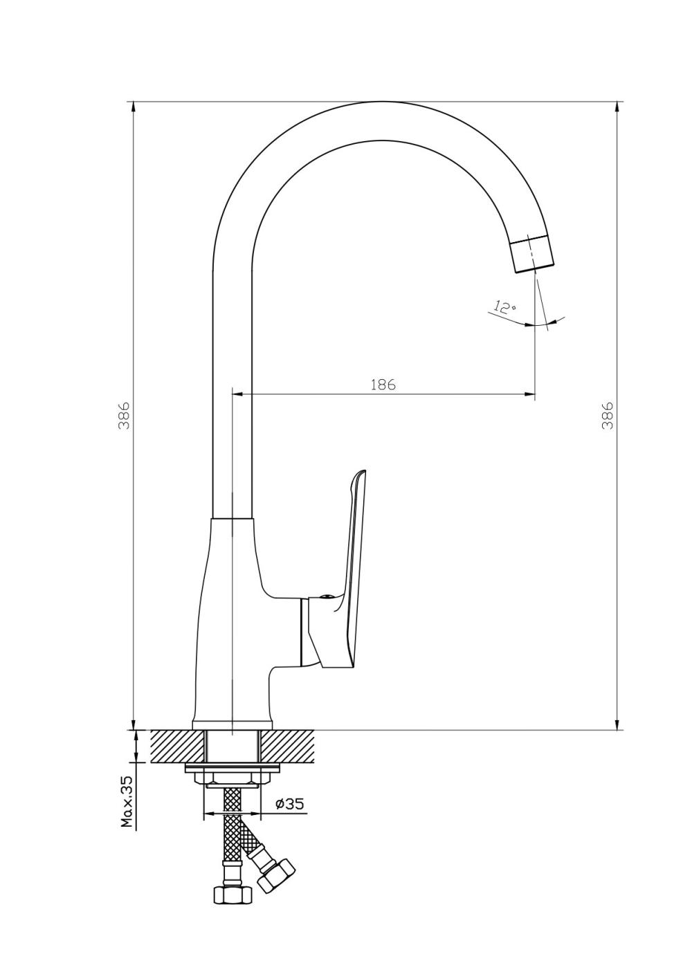 Корпус: PPA, изолированный водоток Излив: поворотный, 360 градусов Картридж: интегрированный ESKO, 35мм Комплектация: крепление "FastFix",гибкая подводка 40см