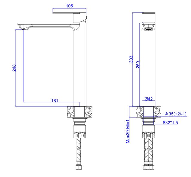 Корпус: нержавеющая сталь Картридж: универсальный ESKO, 35 мм, гибкая подводка, скрытый аэратор