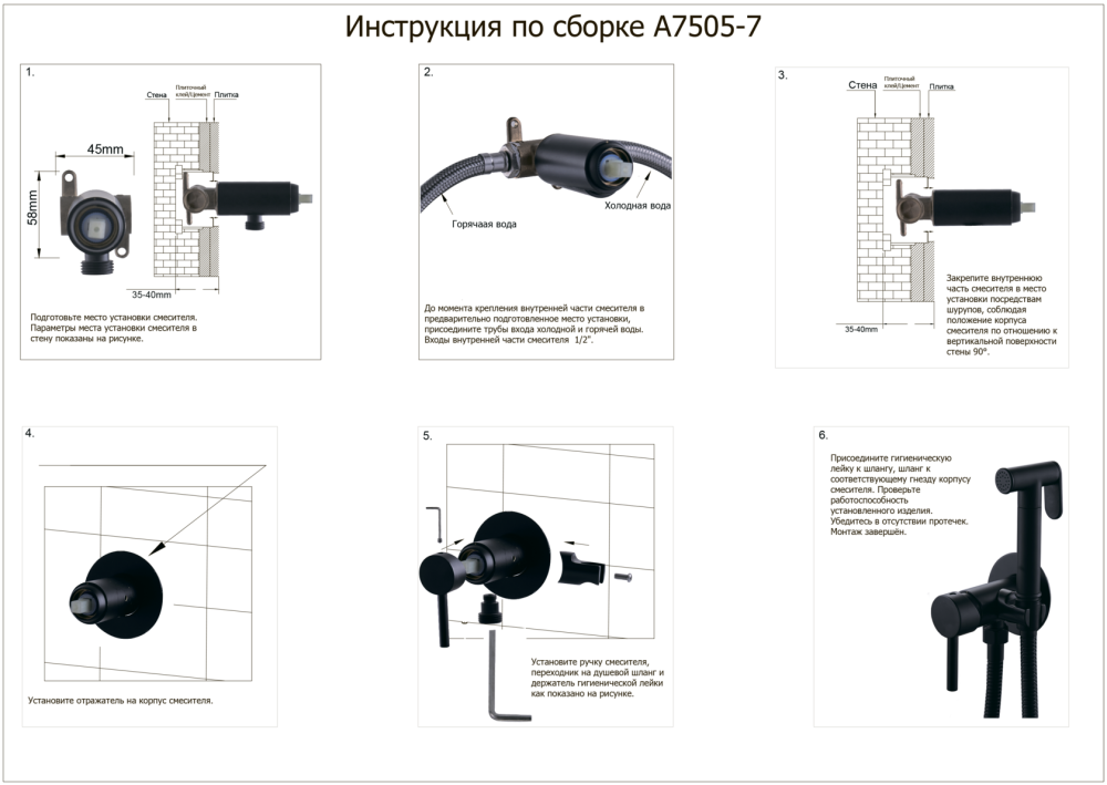 смеситель встраиваемый в комплекте с гигиенической лейкой