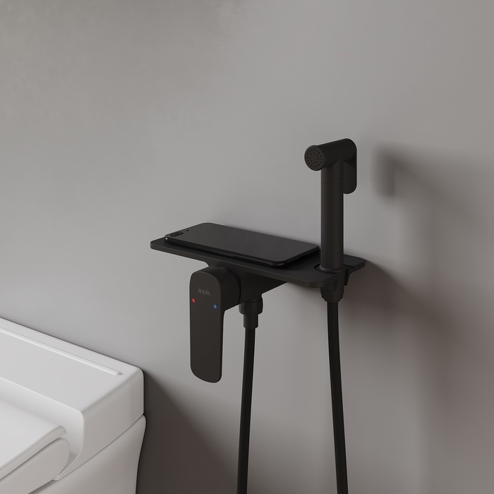 Смеситель IDDIS с гигиеническим душем встраиваемый полка черный Axes (AXEBLSHi08)