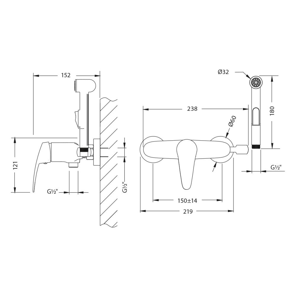 Аксессуары в комплекте: лейка гигиенического душа с нажимным механизмом, шланг 1,5 м