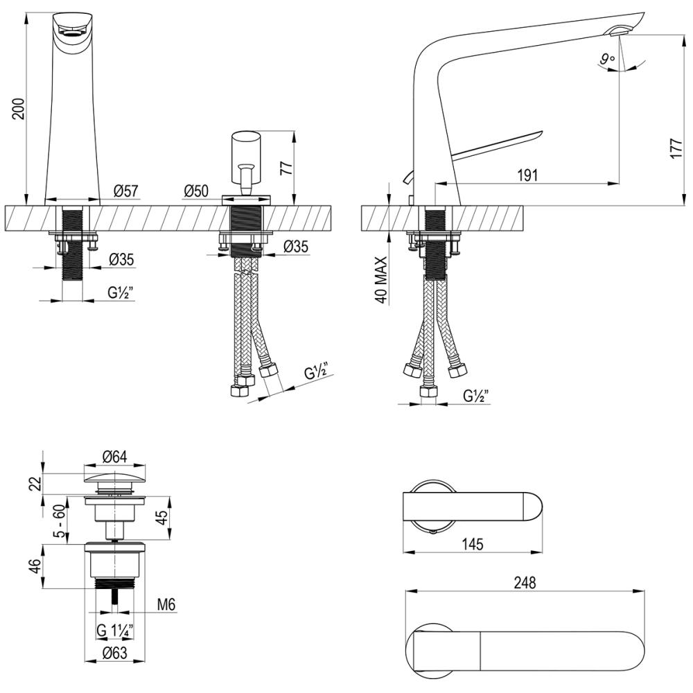 - Монатаж - на раковину, 2 отверстия