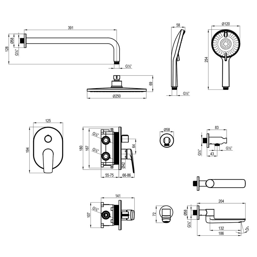 Смеситель Lemark Verba для ванны и душа, встраиваемый (LM11422C)
