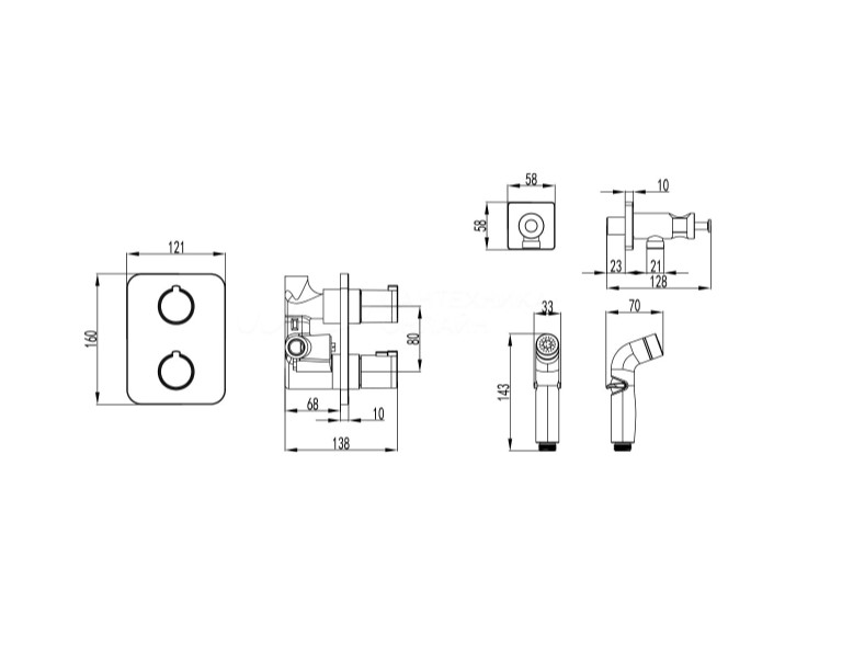- Аксессуары в комплекте: лейка для биде с регулятором напора воды, шланг 1,2 м с функцией вращения лейки без перекручивания