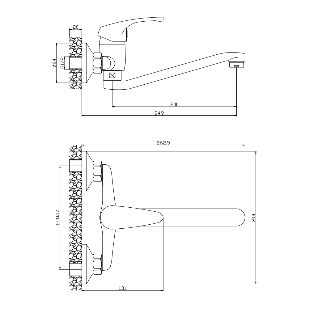 Смеситель OLIVE'S для кухни настенный AVILA (02410AV)
