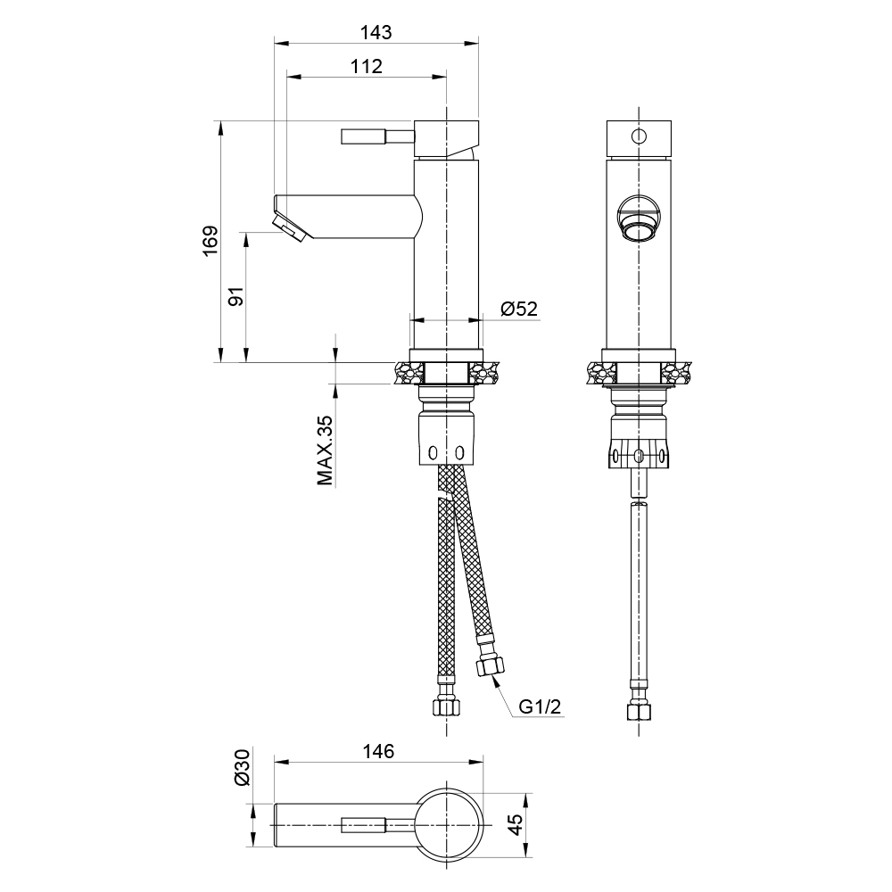 Смеситель OLIVE'S для раковины нержавеющая сталь BALEAR (13100BL)
