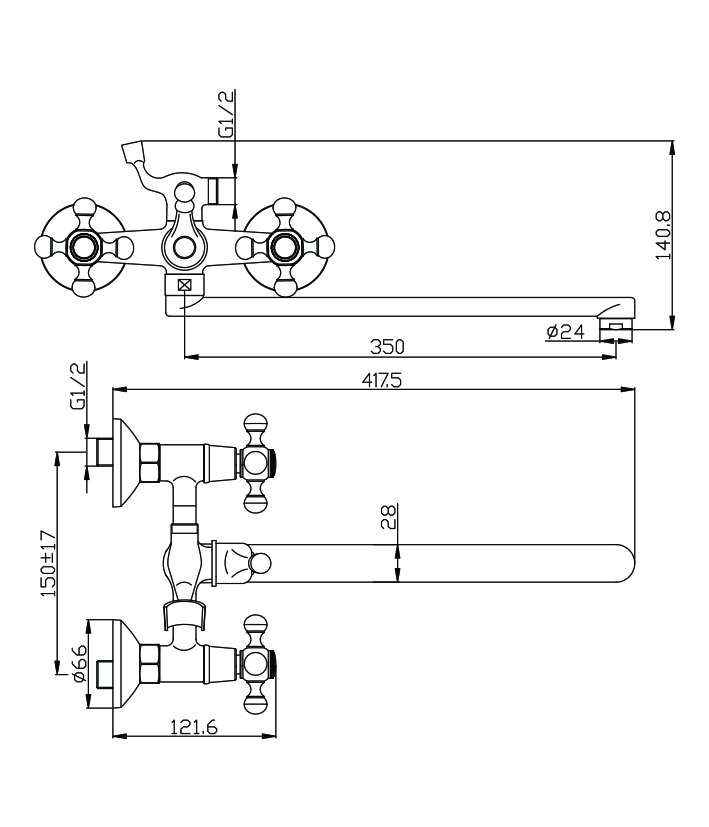 Смеситель OLIVE'S для ванны с длинным изливом GIRONA (01221GR)