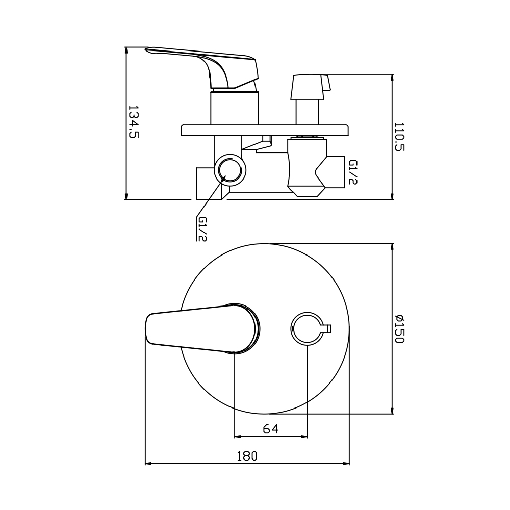 - Монатаж - настенный, 1 отверстие