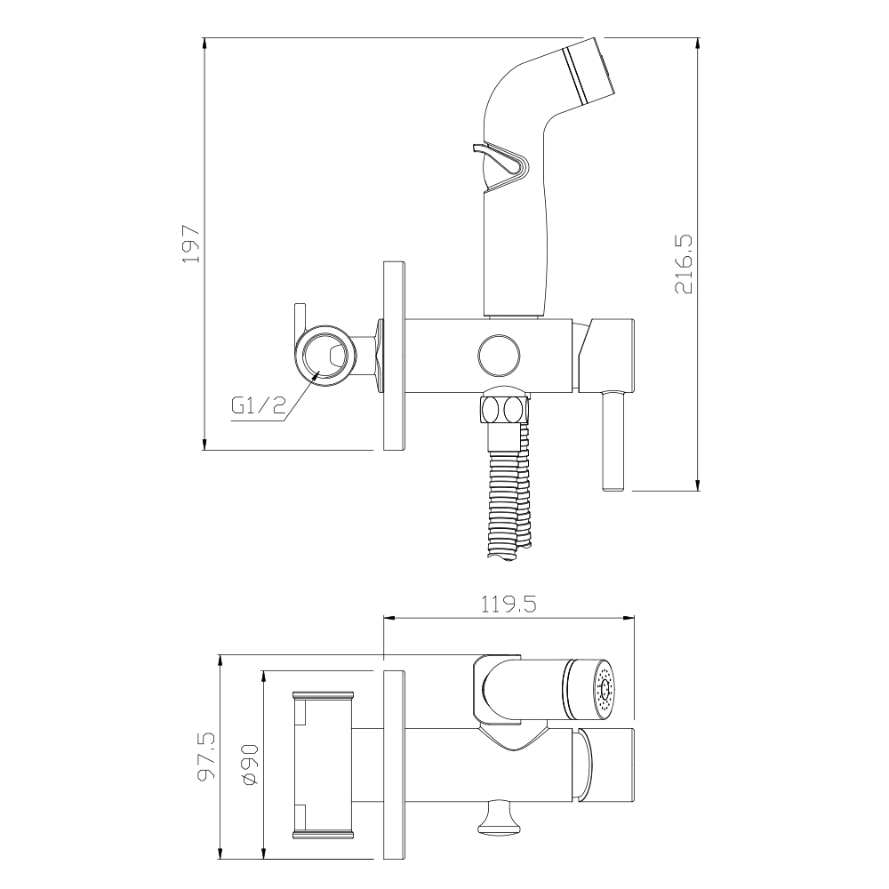 Смеситель встраиваемый с гигиенической лейкой BALEAR13131BLКомплектация: Керамический картридж SILENT OLIVE'S 35 мм