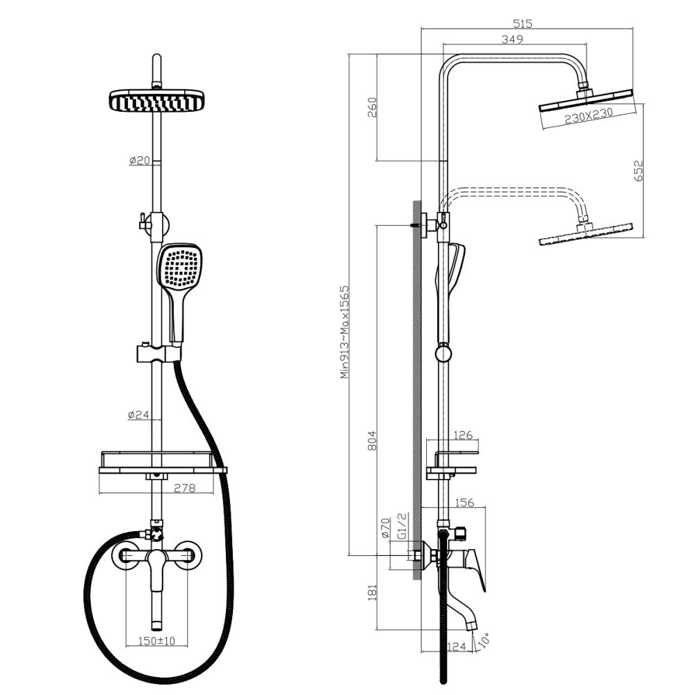 - Регулируемая по высоте полочка для душевых принадлежностей