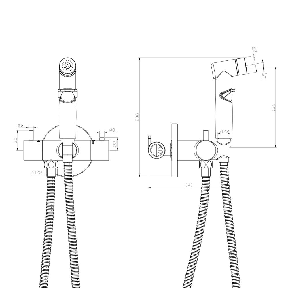 Аксессуары в комплекте (шланг 1,2 м, лейка гигиенического душа с нажимным механизмом)