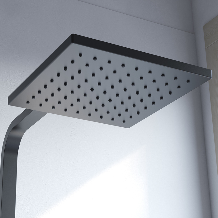 Смеситель для ванны Bild в актуальном черном цвете отличают выраженные геометрические формы и уникальный дизайн ручки-петли с тонкой изящной рамкой. Толщина рамки составляет всего 2 мм, при этом прочность ручки не снижается — она прослужит долгие годы. Излив эстетично интегрирован в корпус, вода из него поступает в ванну под комфортным углом. Керамический дивертор обеспечивает плавное и мягкое переключение воды с излива на душ при любом давлении. В комплекте душевые аксессуары в тон смесителю — однорежимная лейка и гибкий шланг для душа с защитой от перекручивания.