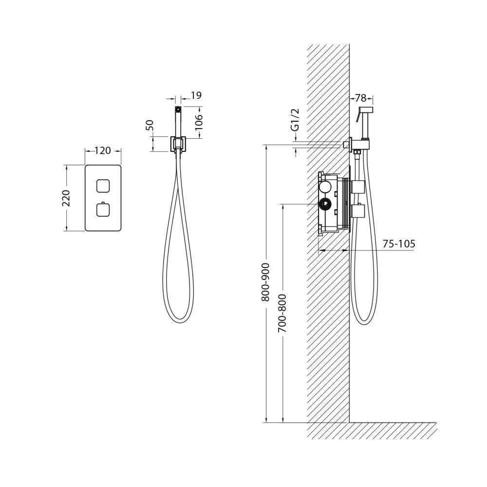 Смеситель встроенный с гигиеническим душем с термостатом Timo Petruma (5089/03SM) черный. В комплект входит: Смеситель с монтажной коробкой, скрытого монтажа, с термостатом - 1 шт.