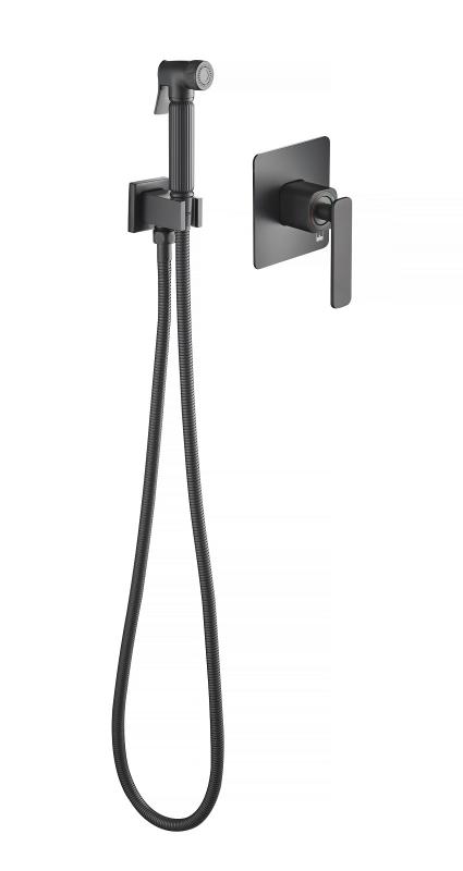 Смеситель встроенный с гигиеническим душем Timo Torne черный (4389/03SM)