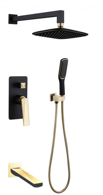 Смеситель встроенный с изливом ЧЕРНЫЙ+ЗОЛОТО 384-B-2