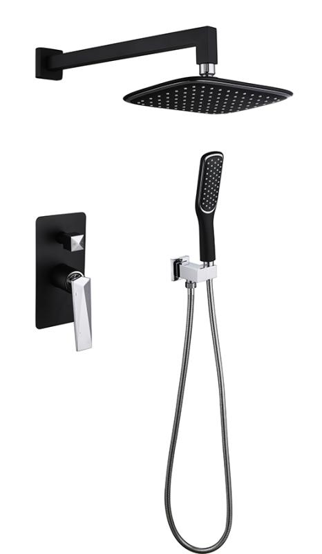 Смеситель встроенный + верхний душ + ручной душ ЧЕРНЫЙ+ХРОМ 374-B
