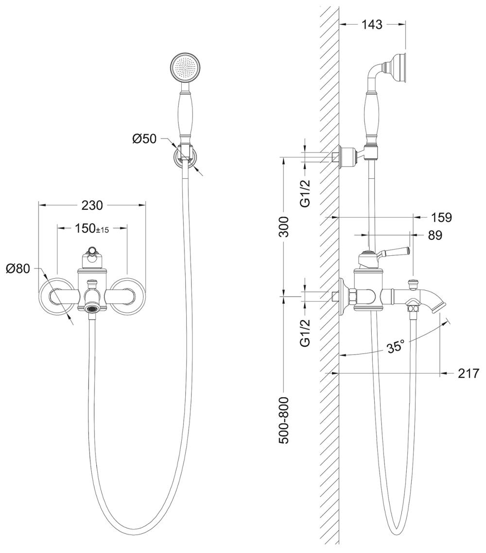 - Монатаж - настенный, 2 отверстия