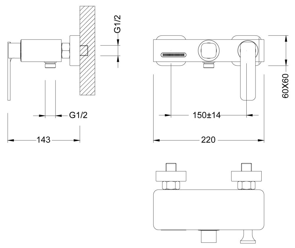 - Монатаж - настенный, 2 отверстия