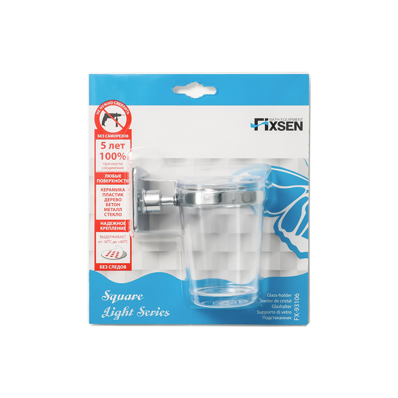 Стакан для ванной комнаты FIXSEN SQUARE FX-93106, хром. Материал: латунь/стекло. Монтаж: настенный.