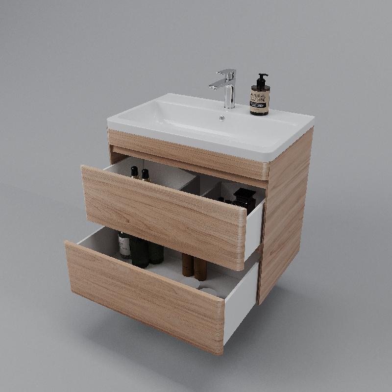Тумба подвесная "Атлантика 70", Люкс ясень перламутр, PLUS + Умывальник Атлантик 70