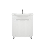 У тумбы «Мирра» 3 распашные дверки, позади дверок – полки. Фасады без ручек – вместо них, эргономичная форма - для удобства открывания. Фасад выполнен из влагостойкой плиты МДФ. В комплект входят хромированные опоры.